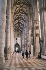 4) Nous sommes arrivés sur Schillerplatz, une jolie place du centre-ville, à côté du Vieux Châteaux (Altes Schloss) qui abrite notamment le Musée du Land de Wurtemberg. Nous sommes entrés dans l'église qui surplombe la place: elle présente une architecture surprenante, où l'on distingue facilement les parties historiques des parties plus modernes, reconstruites après les bombardements.