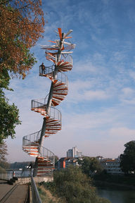 3) Nous sommes montés en haut de la tour "Berblinger": une plate-forme de 20 mètres de haut, inclinée de 10 degrés. Elle a été construite en l'honneur d'Albrecht Ludwig Berblinger, célèbre pour avoir été tailleur, inventeur et pionnier de l'aviation.